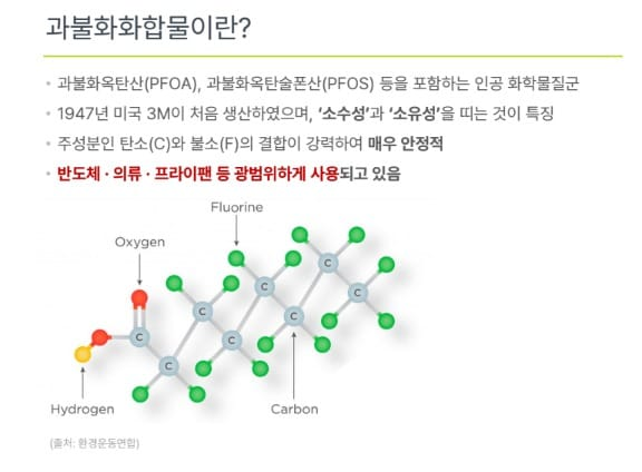 "최근 주목받고 있는 애플워치 - PFAS (PFHxA-Perfluorohexanoic acid) 불소 고무밴드 사례에서 보듯 PFAS(과불화화합물)은 제품을 생산할 때에도 발생되고, 사용할 떄에도 존재하며 이제 이 불소고무밴드를 폐기처리할 때에도 환경에 누출됩니다. PFAS 로부터 항상 영향을 받게 되죠"